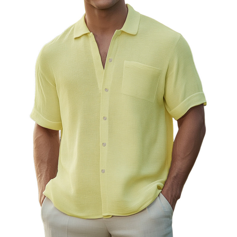 Men's Basic Solid Color Textured Short Sleeve Shirt
