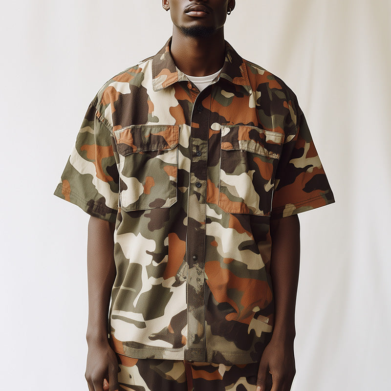Men's Camouflage Print Shirt | Short Sleeve | Casual Style | Modern Camo Design | Breathable Fabric | Comfortable Fit | Durable Material | Ideal for Casual Wardrobe | Fashionable Everyday Shirt