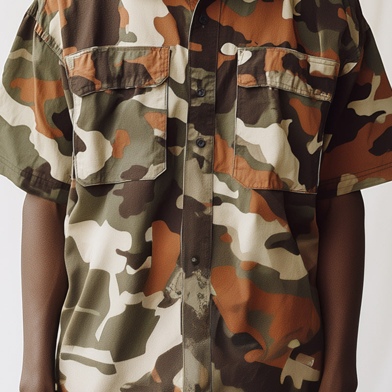 • Unique Design: The shirt features a modern camouflage print that adds a bold statement to your outfit.