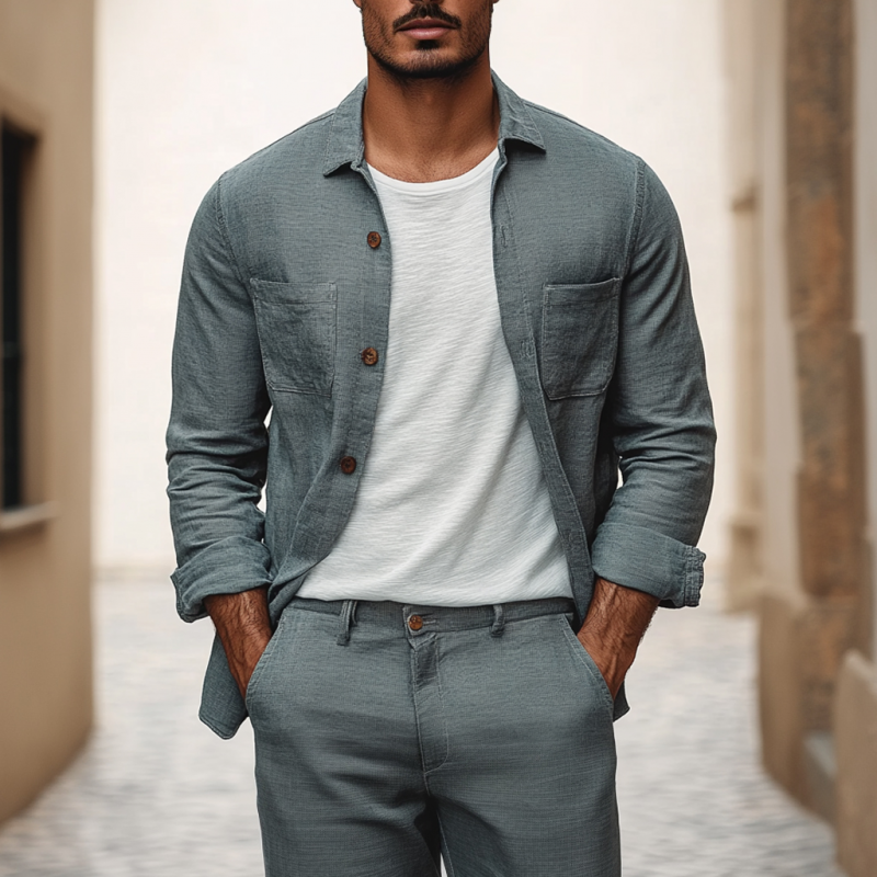 Men's Breathable Linen Long Sleeve Shirt | Casual Patch Pocket Loose Fit | Stylish Lapel Collar | Lightweight Summer Top