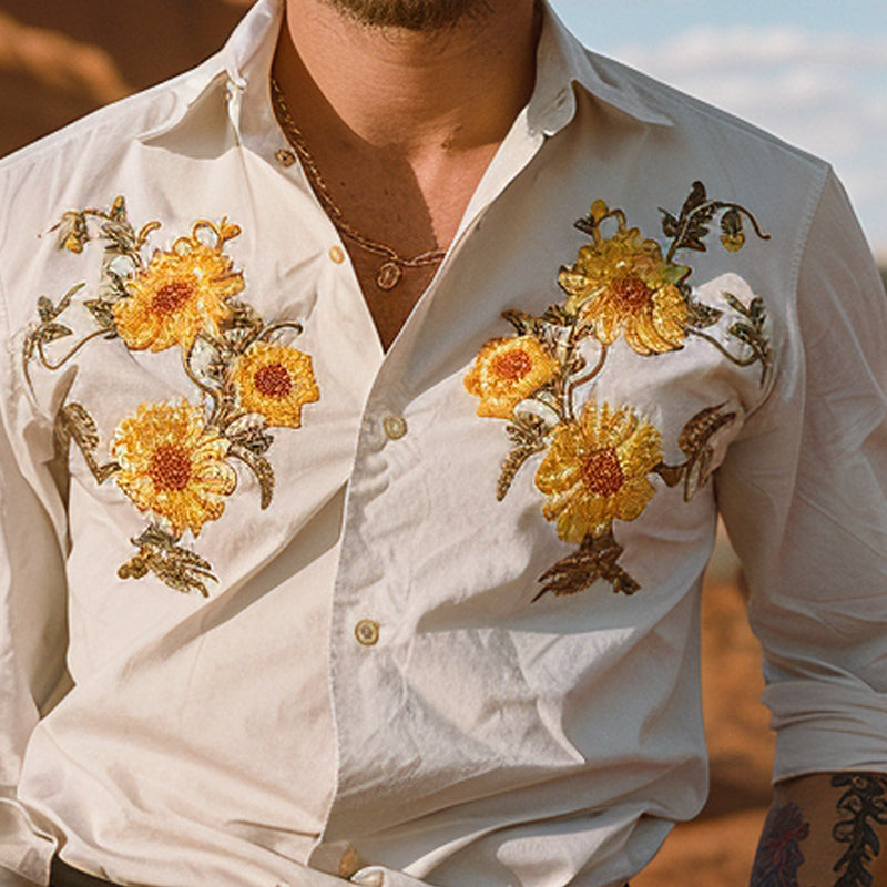 Description:This men's long sleeve shirt features a unique and stylish floral embroidery print, combining the elegance of traditional floral patterns with a modern, casual design. The intricate embroidery adds a touch of artistry and sophistication, making this shirt a standout piece for everyday wear and special occasions.