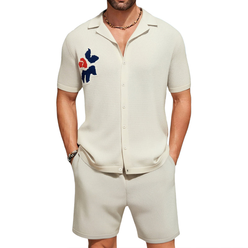 Men's Fashion Two Piece Set | Casual Knitted Jacquard | Short Sleeve Top & Shorts | Comfortable & Stylish Outfit | Trendy Pattern | Versatile & Breathable | Relaxed Fit | Multiple Colors Available | Activewear