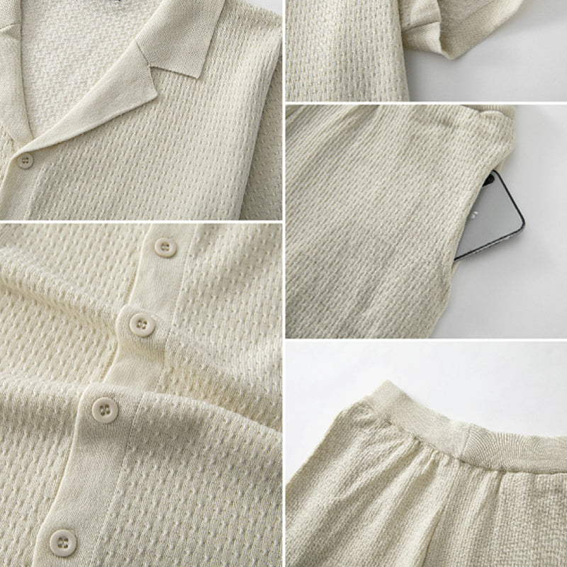 This Men's Casual Knitted Jacquard Short Sleeve Shorts Two Piece Set is an essential addition to your wardrobe, combining comfort with contemporary style. Its unique design and versatile nature make it suitable for a wide range of settings, ensuring you look your best effortlessly.