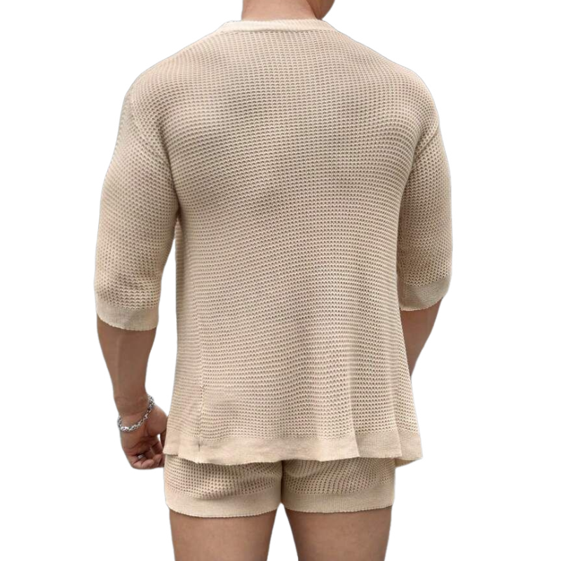 The Men's Casual Mid-Sleeve Cardigan and Elastic Waist Shorts Knitted Set is the ultimate combination of comfort and contemporary style. With its cozy knitted fabric, relaxing fit, and versatile design, this set is ideal for everything from lounging at home to casual outings. Elevate your casual wardrobe effortlessly with this chic and functional outfit that will keep you looking and feeling great!