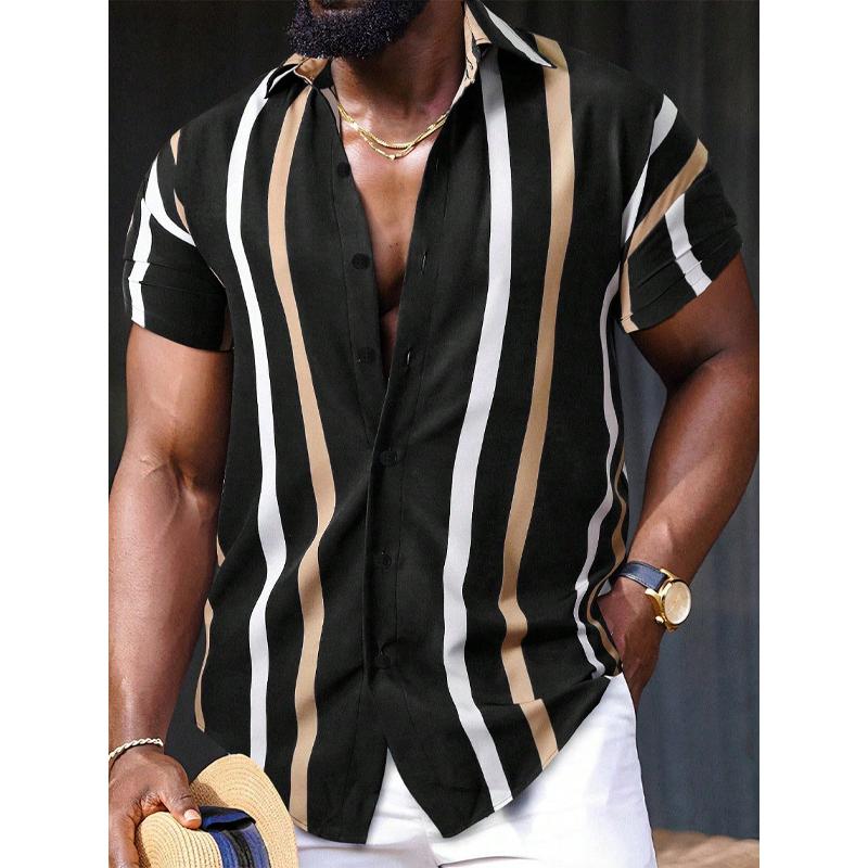 Men's Striped Short Sleeve Shirt | Casual Lapel Collar | Lightweight Fabric | Contemporary Style | Breathable Summer Top | Versatile Fit | Perfect for Everyday Wear | Available in Various Sizes
