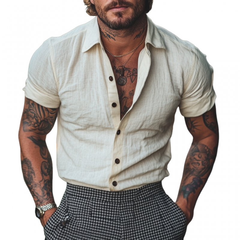 The Men’s Casual Vacation Breathable Linen Loose Lapel Slim Fit Short Sleeve Shirt is the perfect blend of relaxed elegance and summer comfort. Crafted from a high-quality linen fabric, this shirt offers excellent breathability, moisture-wicking, and a lightweight feel, making it ideal for warm-weather vacations or outdoor leisure. The loose fit and slim cut provide a modern silhouette, while the lapel collar adds a touch of sophistication. Whether you're heading to the beach, exploring a new city, or enjoying outdoor gatherings, this shirt elevates your casual style with its airy, comfortable design.