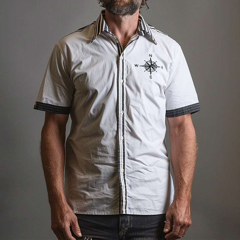 Men's Short Sleeve Shirt | Compass Print Design | Casual Relaxed Fit | Breathable Fabric | Summer Fashion Top | Adventure Inspired Style | Versatile Men's Shirt