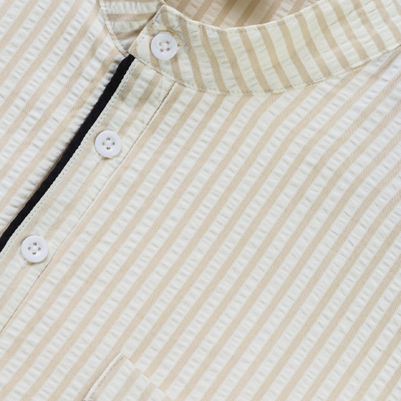 Men's Contrast Striped Shirt | Stand Collar | Short Sleeve | Versatile Style | Casual to Formal Wear