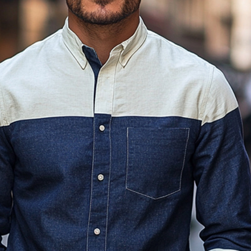 Men's Cotton Linen Shirt | Long Sleeve | Contrast Stitching | Button Down Collar | Classic Fit | Breathable Lightweight Fabric | Versatile Styling | Available in Multiple Sizes | Casual to Business Wear