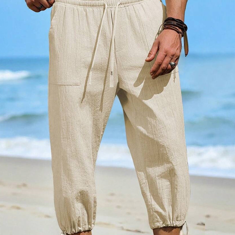 Men's Cropped Pants | Cotton Linen Blend | Regular Fit | Breathable Solid Color Casual Wear | Versatile Style for Any Occasion | Comfortable Summer Outfit
