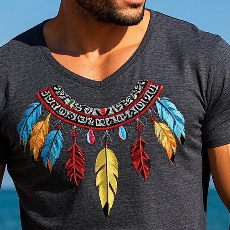 Men's T-Shirt | Cotton Blend | Feather Embroidery | Short Sleeve | Casual Fit | Comfortable | Versatile | Fashion-Forward | Ideal for Layering