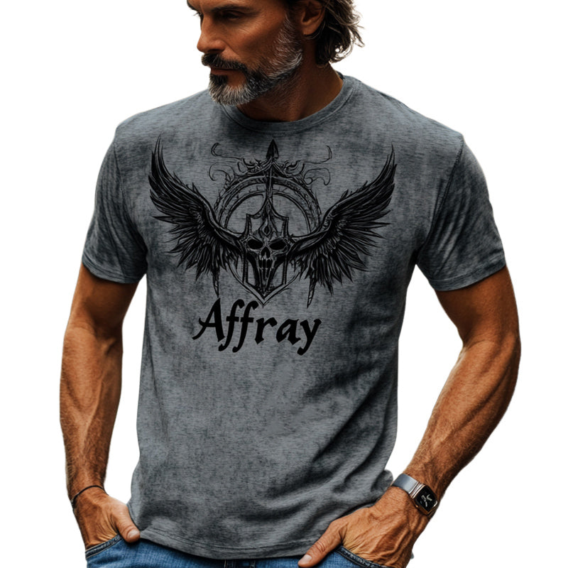 Men's Dark Gray Vintage Print T-Shirt | Round Neck | Short Sleeve | Premium Cotton | Casual Style | Relaxed Fit