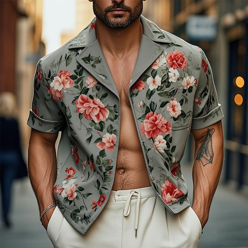 Men's Floral Print Short Sleeve Shirt | Casual Modern Fit | Lightweight Notched Lapel | Breathable Summer Top | Sizes S-XXXL