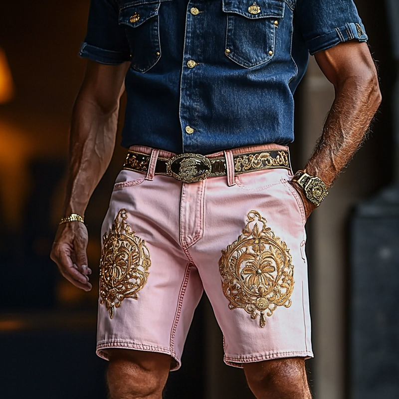 The Men's Fashion Retro Embroidered Straight Denim Shorts blend nostalgic embroidery with classic denim design. Their relaxed fit and vintage-inspired details make them an ideal choice for adding a retro touch to your summer wardrobe.