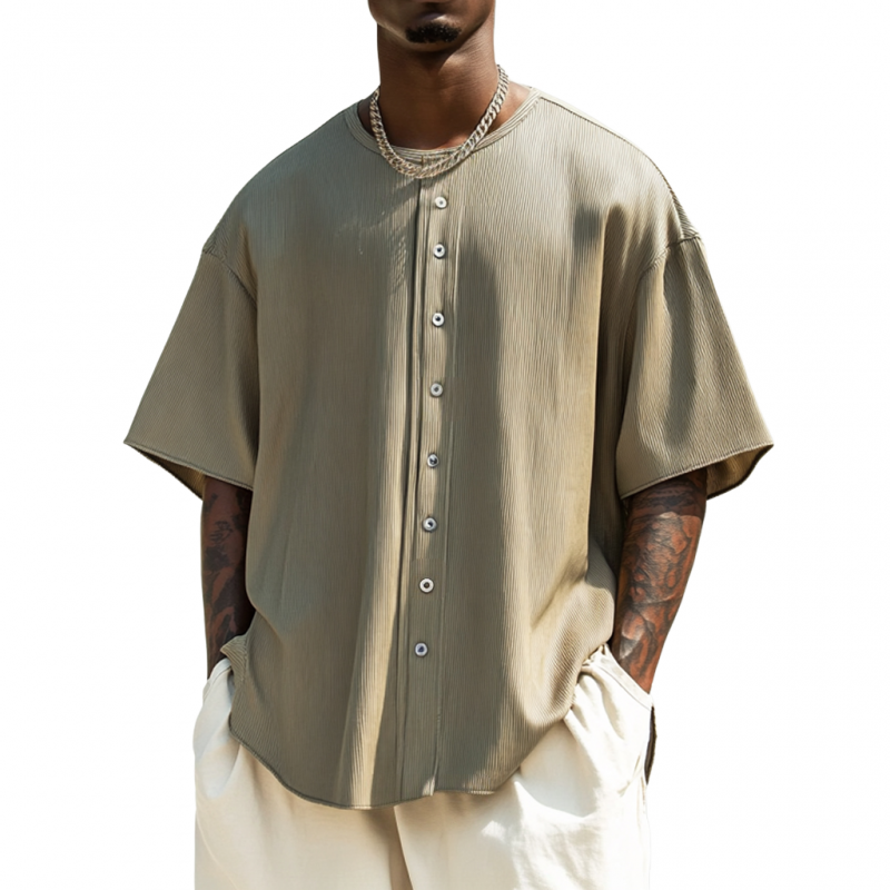 Men's Button Decorated T-Shirt | Round Neck | Short Sleeve | Loose Fit | Casual Streetwear | Soft Breathable Fabric | Fashion-Forward Design | Versatile Layering | Comfort and Style | Summer Outfits