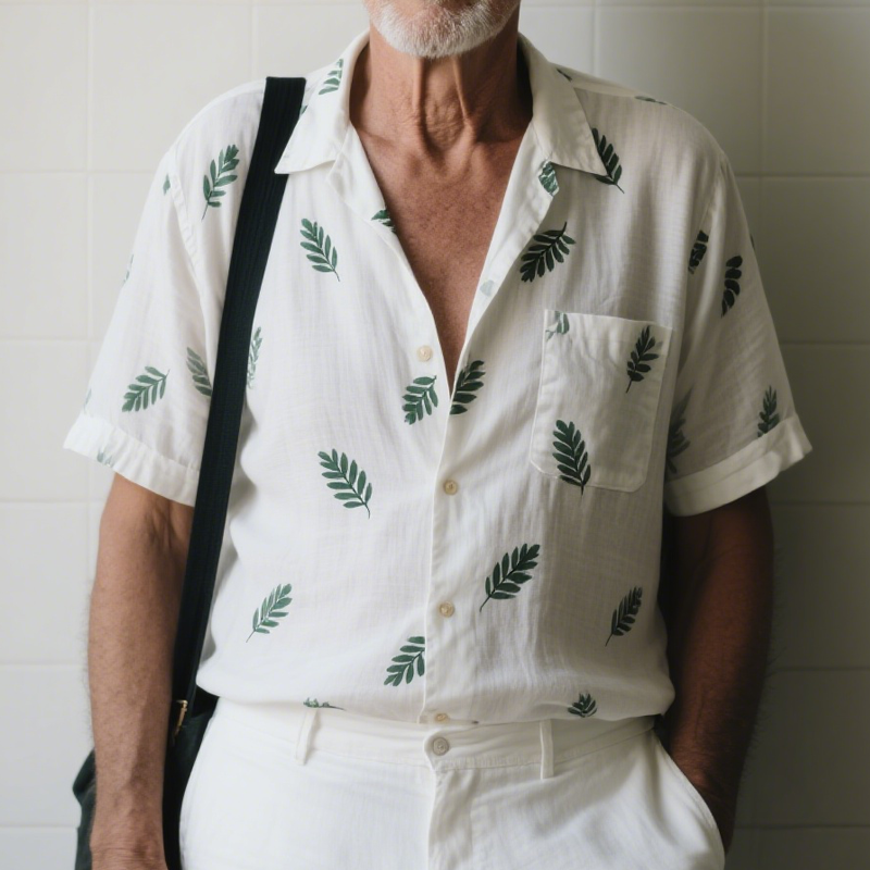 Men's Short Sleeve Lapel Shirt | Leaves Print | Casual Lightweight Breathable Fabric | Relaxed Fit | Warm Weather | Stylish Outdoor Wear