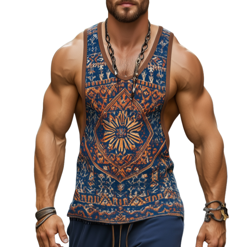 The Men's Retro Casual Ethnic Style Geometric Print Round Neck Tank Top is a versatile addition to any man’s wardrobe. Its combination of a trendy geometric print, comfortable sleeveless design, and high-quality fabric makes it perfect for summer outings, casual gatherings, or as a stylish layering piece. Embrace your individuality and express your unique style with this must-have tank top.