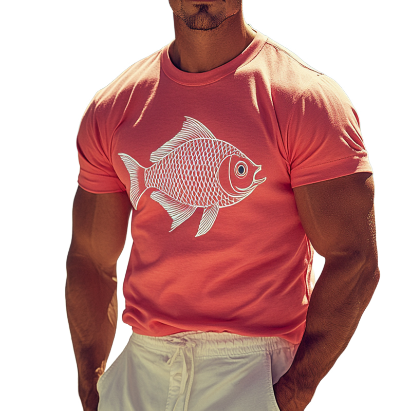 Men's T-Shirt | Retro Fish Print | Casual Short Sleeve | Round Neck | Breathable Cotton | Relaxed Fit