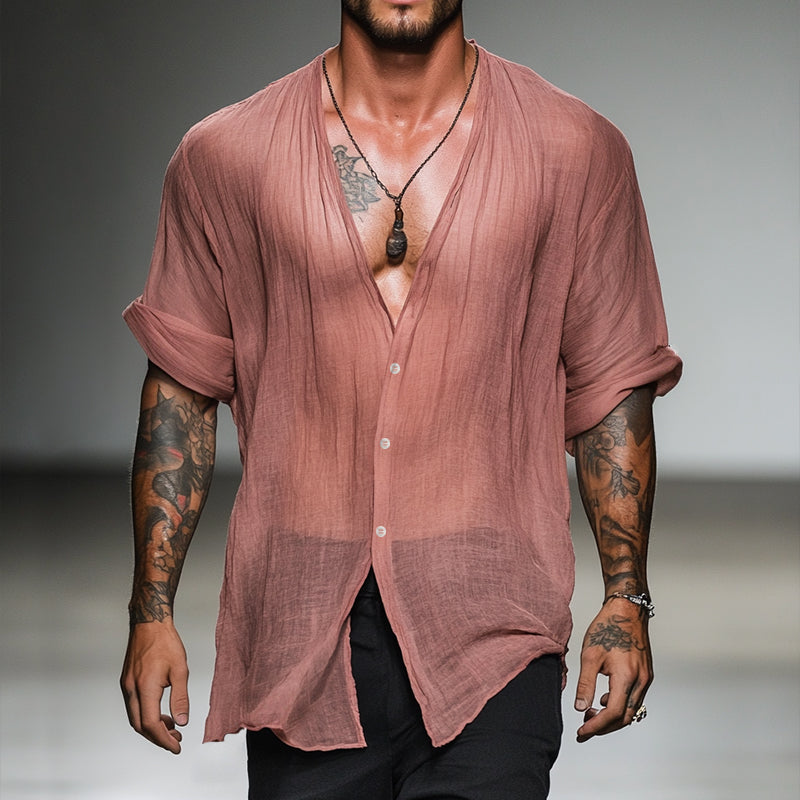 • Material:Crafted from high-quality linen, this shirt is lightweight, breathable, and incredibly soft against the skin. Linen is known for its moisture-wicking properties, making it an excellent choice for warm-weather wear while giving a relaxed and effortless look.