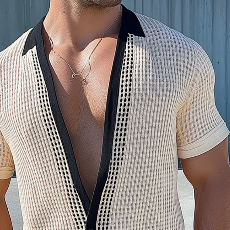 Men's Short Sleeve Mesh Knit Shirt | Retro Collarless Casual Top | Breathable Summer Wear | Lightweight Vintage Style | Fashionable Relaxed Fit | Available in S to 3XL | Ideal for Spring & Summer