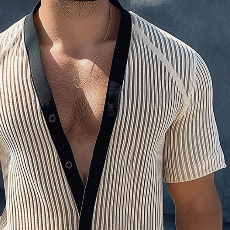 Men's Retro Casual Shirt | Mesh Knit Fabric | Collarless Design | Short Sleeve | Breathable & Lightweight | Perfect for Spring, Summer & Early Autumn | Stylish & Comfortable | Sizes S-3XL | Ideal for Casual Outings