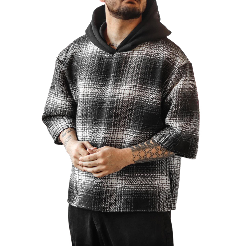 Men's Retro Plaid Hooded T-Shirt | Casual Short Sleeve | Vintage Style | Breathable Cotton Fabric | Comfortable Fit | Relaxed Short Sleeves | Fashionable | Available Sizes S-3XL | Perfect for Casual Outings