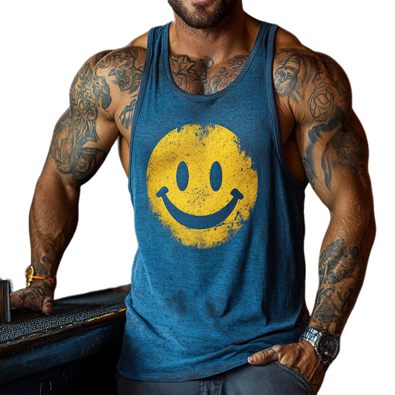 Men's Retro Smiley Face Tank Top | Sleeveless Crew Neck | Comfortable & Stylish | Casual Summer Wear