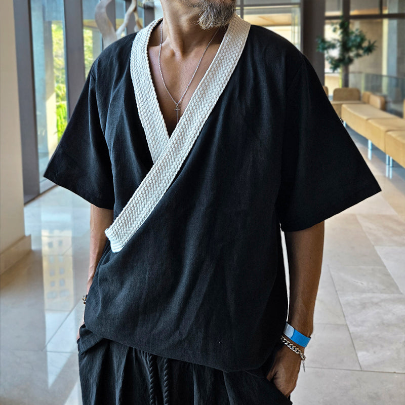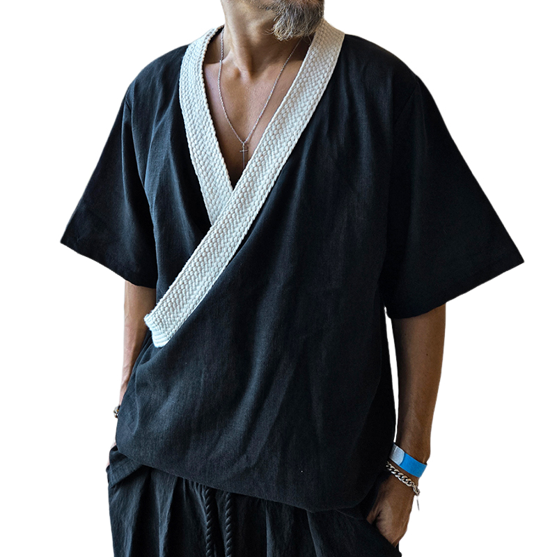 Description:Embrace timeless style with our Men's Retro Casual Splicing Linen V-Neck Short Sleeve Shirt. Perfect for warm weather, this shirt combines comfort with a touch of vintage flair, making it an ideal choice for casual outings, beach trips, or relaxed gatherings.