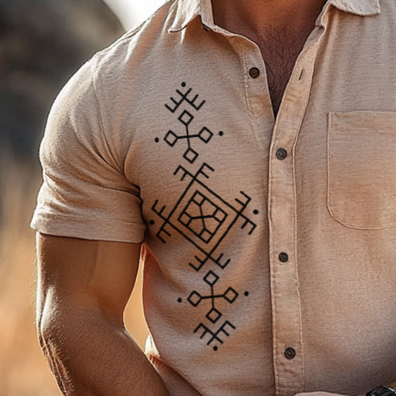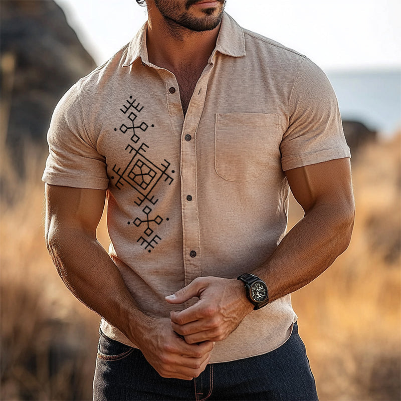 Men's Casual Retro Lapel Shirt | Totem Print | Short Sleeve | Breathable Cotton | Stylish & Comfortable | S to 3XL | Perfect for Spring Summer Fall Casual Outings