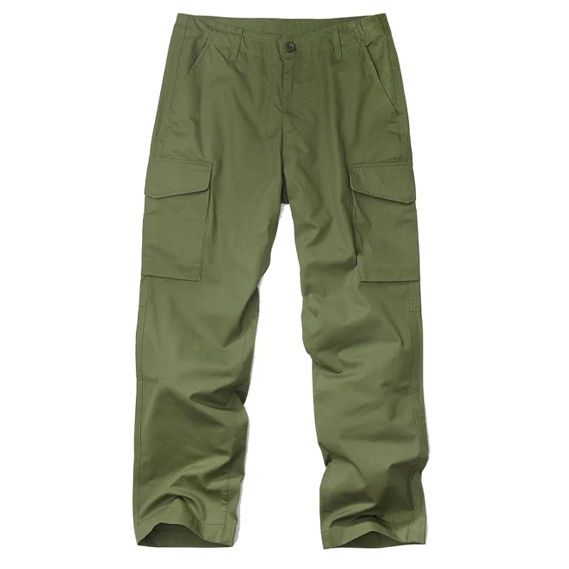 Balancing durability and practicality, these cotton cargo pants are a great addition to any casual or outdoor wardrobe. They combine classic cargo features with a clean, straight silhouette for a comfortable, versatile fit suitable for various occasions.