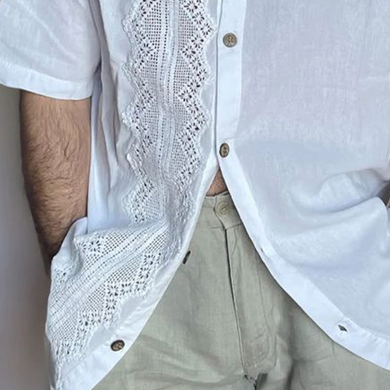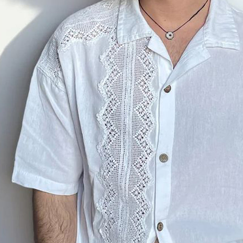 Men's Lace Spliced Lapel Shirt | Solid Color | Long Sleeve | Classic & Modern Styles | Versatile & Stylish Dress Shirt | High-Quality Material | Elegant Design | Suitable for Formal & Casual Occasions