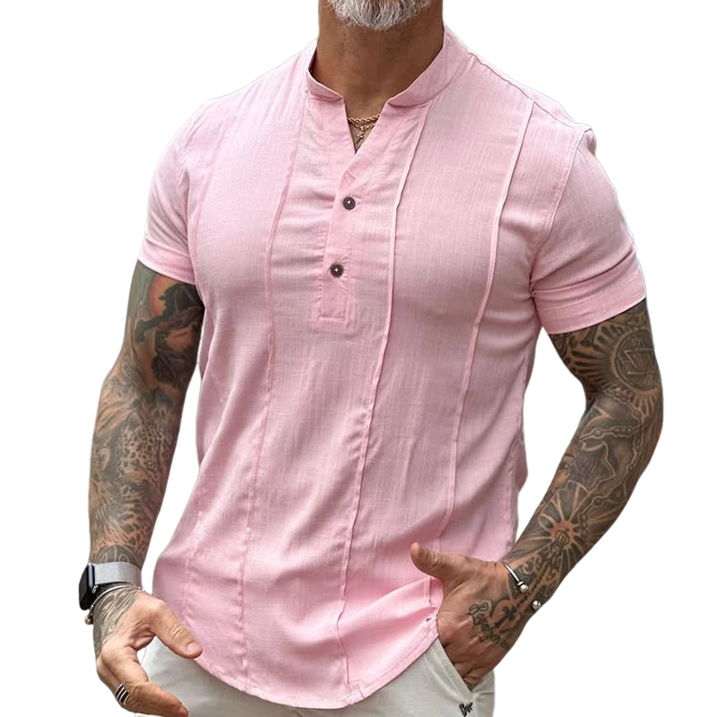 Men's Casual Shirt | Solid Cotton Linen Blend | Henley Collar | Short Sleeve | Breathable Lightweight Design | Button Placket | Regular Fit | Summer Outdoor Wear | Versatile and Comfortable