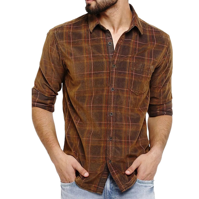 • Styles Available: The shirt features a traditional plaid pattern in a rich brown hue, offering a classic aesthetic with a contemporary twist. The plaid design adds visual interest and dimension, making it a standout piece in any casual wardrobe.