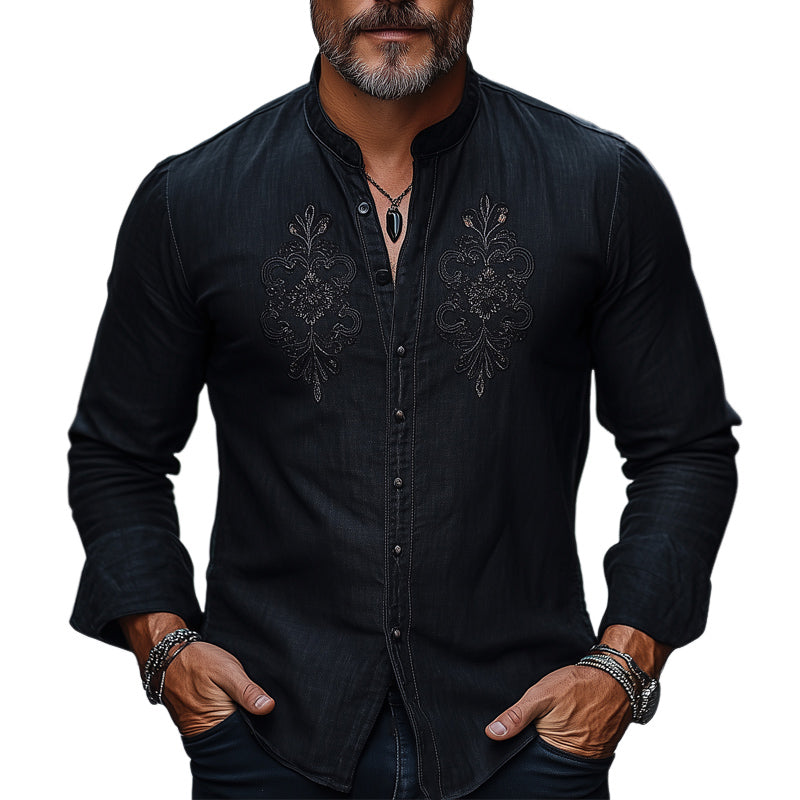 The Men's Spring and Autumn Cotton and Linen Embroidered Casual Skin-friendly Shirt is designed for those who appreciate understated elegance and superior comfort. Whether you're dressing it up with trousers or down with jeans, this shirt is versatile enough to adapt to any occasion, making it an essential piece for transitioning between seasons.