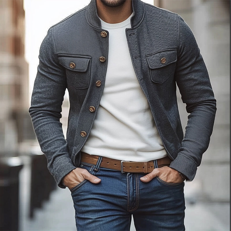 Men's Dark Grey Twill Button Jacket | Long Sleeve | Spring/Autumn Outerwear | Classic Fit | Versatile Timeless Design | Durable Fabric | Button Closure | Available in S to 3XL | Stylish Men's Coat
