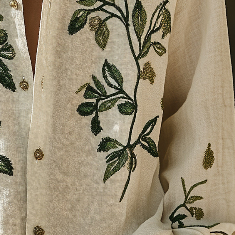 • Leaf Embroidery: The intricate leaf embroidery adds a unique and sophisticated touch to the shirt, perfect for spring fashion.