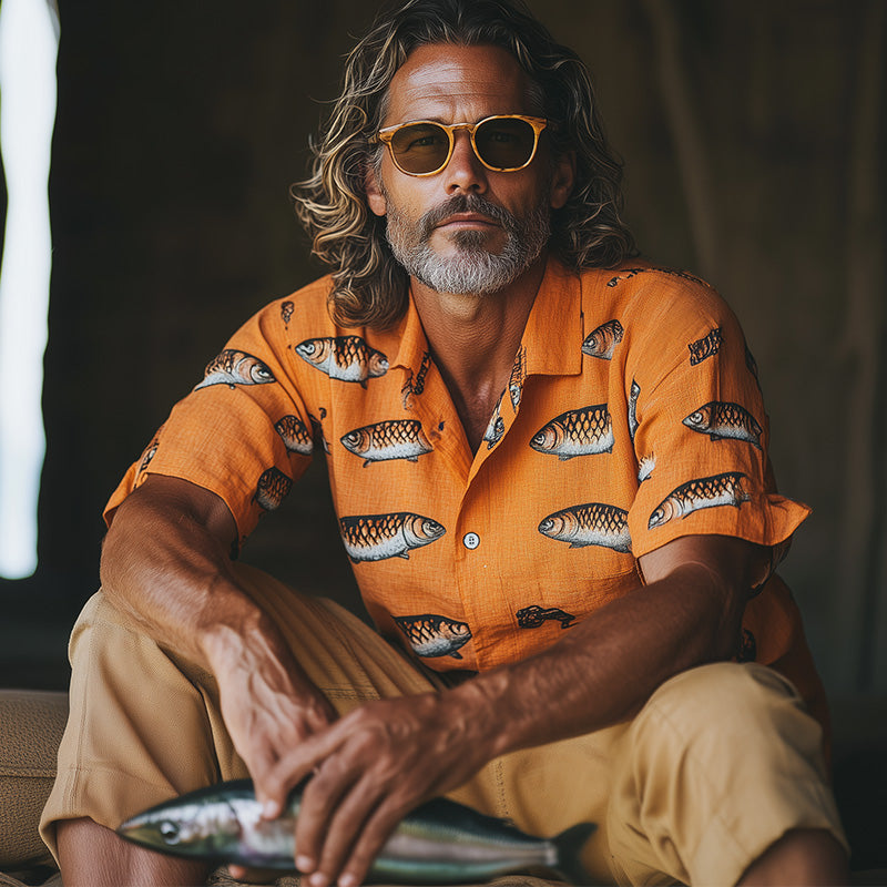 Men's Sardines Print Shirt | Spring Fashion | Short Sleeve | Breathable Fabric | Quirky Design | Classic Fit | Comfortable Casual Apparel