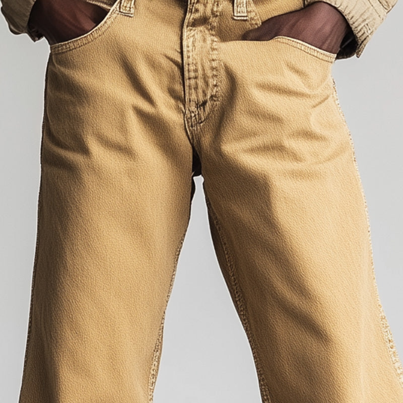 These Men's Spring Retro Simple Solid Color Denim Casual Pants seamlessly blend retro charm with modern style. Their versatile design makes them suitable for various occasions, ensuring you always step out with confidence and class.