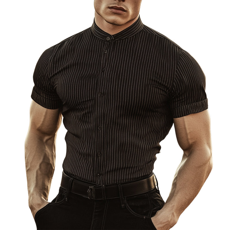 This Men's Striped Stand Collar Shirt combines classic elegance with modern style. Made of a comfortable cotton blend, this shirt offers breathability and softness, making it ideal for warm weather wear. The short sleeves and stand collar add a touch of contemporary flair, while the striped design gives a classic, timeless appeal.
