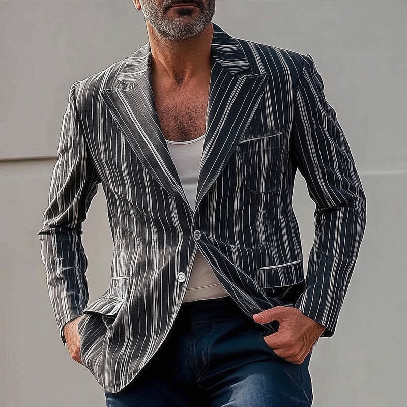 Men's Vertical Striped Blazer | Two-Button Closure | Tailored Fit | Polyester Viscose Blend | Fully Lined | Formal & Casual Versatility | Sizes S-3XL