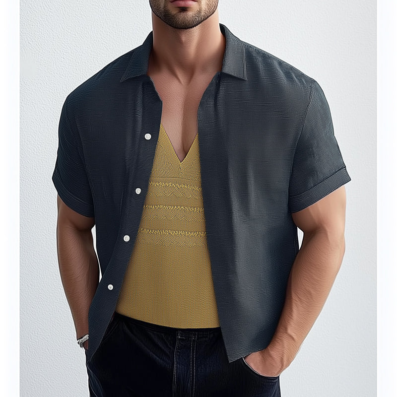 Men's Short Sleeve Textured Shirt | Summer Casual Top | Button-Down Collar | S-3XL | Breathable Fabric | Versatile Men's Clothing | Machine Washable