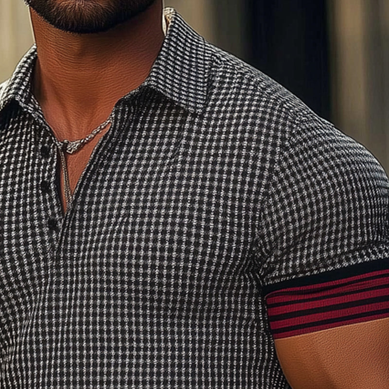 Men's Polo Shirt | Summer Business Wear | Black and White Checkered | Cotton Blend | Short Sleeve | Classic Polo Collar | Casual Office Style | Sizes S to 3XL | Machine Washable | Comfortable Breathable Fabric
