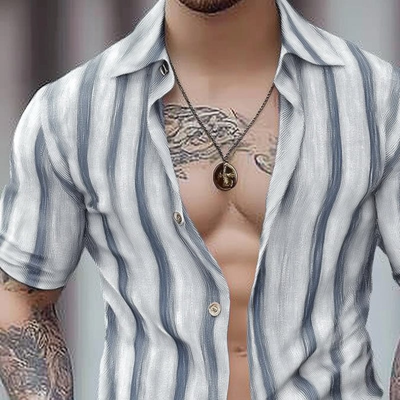 Men's Striped Short Sleeve Shirt | Classic Button-Down Collar | Summer Breathable Cotton Casual Top | Relaxed Fit | Versatile Fashion and Function | Elegant Style for All Occasions