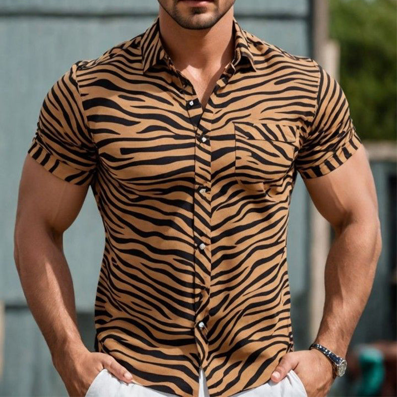 Men's Summer Comfort Tiger Texture Short Sleeve Shirt