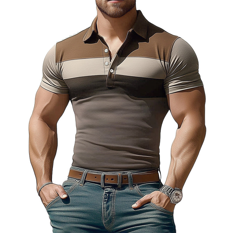 Men's Summer Comfortable Stretch Polo Neck Colorblock T-Shirt