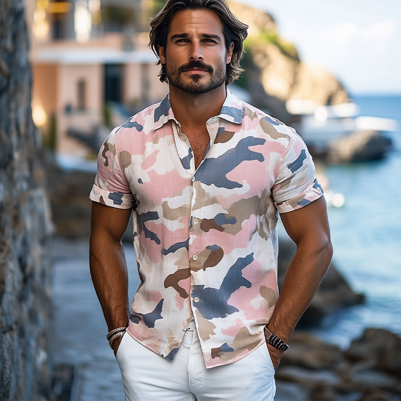 Product Name: Men's Summer Fashion Casual Cotton and Linen Camouflage Print Short-Sleeved Shirt