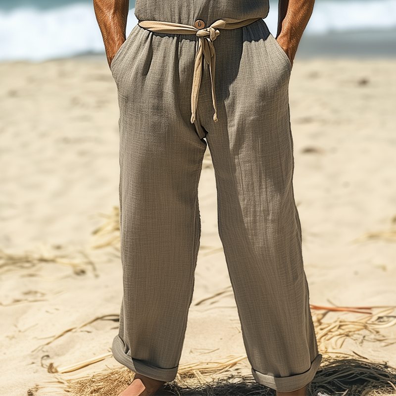 Men's Cotton Linen Jumpsuit | Summer Casual Hawaiian Style | Beach Vacation Outfit | Pocket Design | Lightweight | Breathable | Relaxed Fit | Ideal for Casual Gatherings