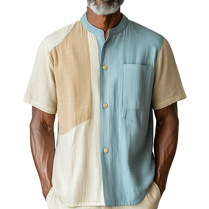 Men's Colorblock Linen Blend Shirt | Summer Fashion Short Sleeve | Casual Button-Down | Breathable & Stylish | Relaxed Fit | Versatile for Casual Occasions
