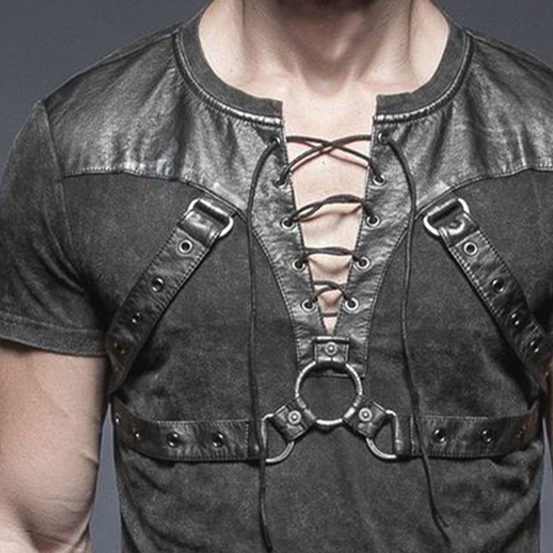Discover a unique blend of edgy style and summer comfort with our Men's Summer Fashion Leather Stitching Lace-Up T-Shirt. This t-shirt is designed for the fashion-forward man who isn't afraid to make a bold statement. Featuring striking leather stitching details and a distinctive lace-up design, this t-shirt transforms a classic piece into a trendsetting essential. Crafted to catch the eye, it bridges the gap between rugged and refined, making it perfect for casual outings or stylish gatherings.