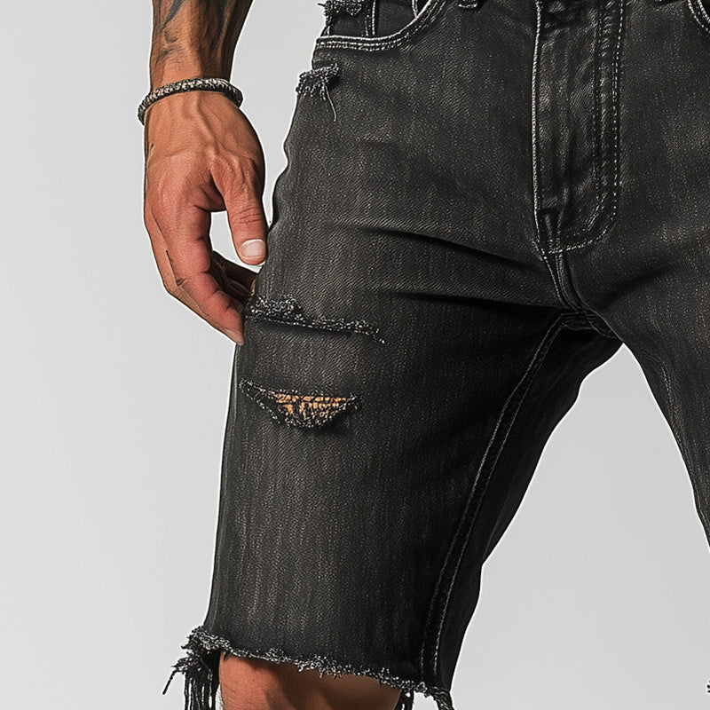Men's Retro Slim Fit Ripped Denim Shorts | Vintage Style | High-Quality Fabric | Breathable Summer Wear | Casual | Fashionable Design | Durable | Comfortable | Perfect for Beach or Casual Outings